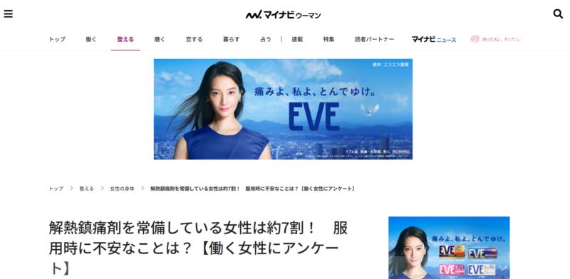タイトル: 解熱鎮痛剤を常備している女性は約7割! 服用時に不安なことは? 【働く女性にアンケート】 >>>記事はこちらから